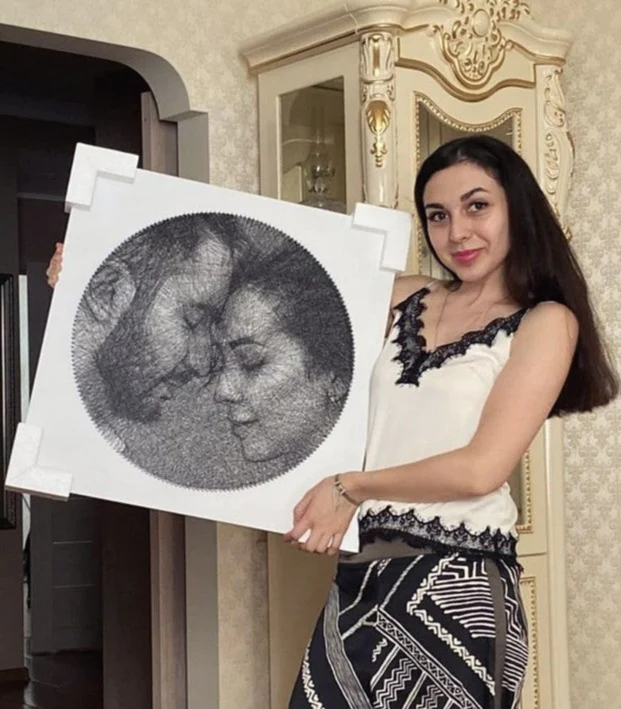 In this captivating piece of string art, a mesmerizing portrait comes to life through the intricate arrangement of colorful threads. Delicate strands are meticulously woven together, meticulously mapped, and shaped to form the contours, features, and expressions of a human face. With each carefully placed thread, the artist captures the essence and soul of the subject, encapsulating their unique personality and emotions.